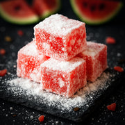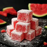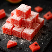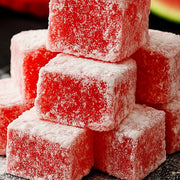 Klasisks lukums kubiņu formā ar svaigu un sulīgu arbūza garšu, kas atgādina karstas vasaras dienas un nogatavojušos augļu saldumu. Tā maigi sarkanā krāsa piešķir desertam pievilcīgu izskatu un uzreiz piesaista uzmanību.