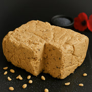 Šī halva apvieno klasisko zemesriekstu salduma dziļumu ar smalku magoņu graudainību. Tās tekstūra ir maiga un drupena, bet magoņu sēklas piešķir katram kumosam raksturu un nelielu kraukšķīgumu.