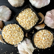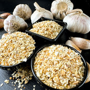 Vidēja izmēra ķiploku granulas. Gardi, kaltēti ķiploki gaļas un dārzeņu ēdieniem piešķirs asumu un pikanumu. Pievienojiet sauju zupai vai gaļas sautējumam un baudiet!