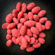 Kraukšķīgas mandeles rozā šokolādē ar aveņu garšas noti