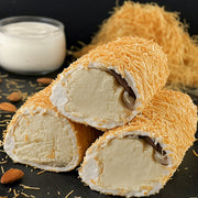 Lukums ir pietiekami salds, bet īpaši baudāms tieši tekstūru saspēles dēļ – mīkstais krēms, mandeļu kodolīgums un kraukšķīgā kadaifa kārta veido perfektu kombināciju, kas patiks gan lieliem, gan maziem gardēžiem.