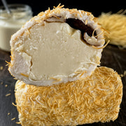 Krēma kārtu ieskauj gaiša zefīra masa, kas piešķir lukumam vieglu un maigu struktūru. Visa salduma virspuse ir pārklāta ar kadaifu – smalku, kraukšķīgu turku mīklas salmiņu, kas ir salds un piedod desertam kraukšķīgu akcentu.